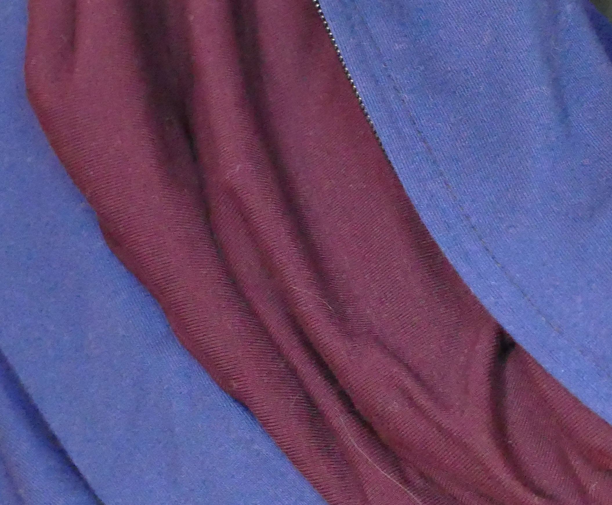 -Autour du cou la fermeture éclair fermée pour cacher ses effets personnels.