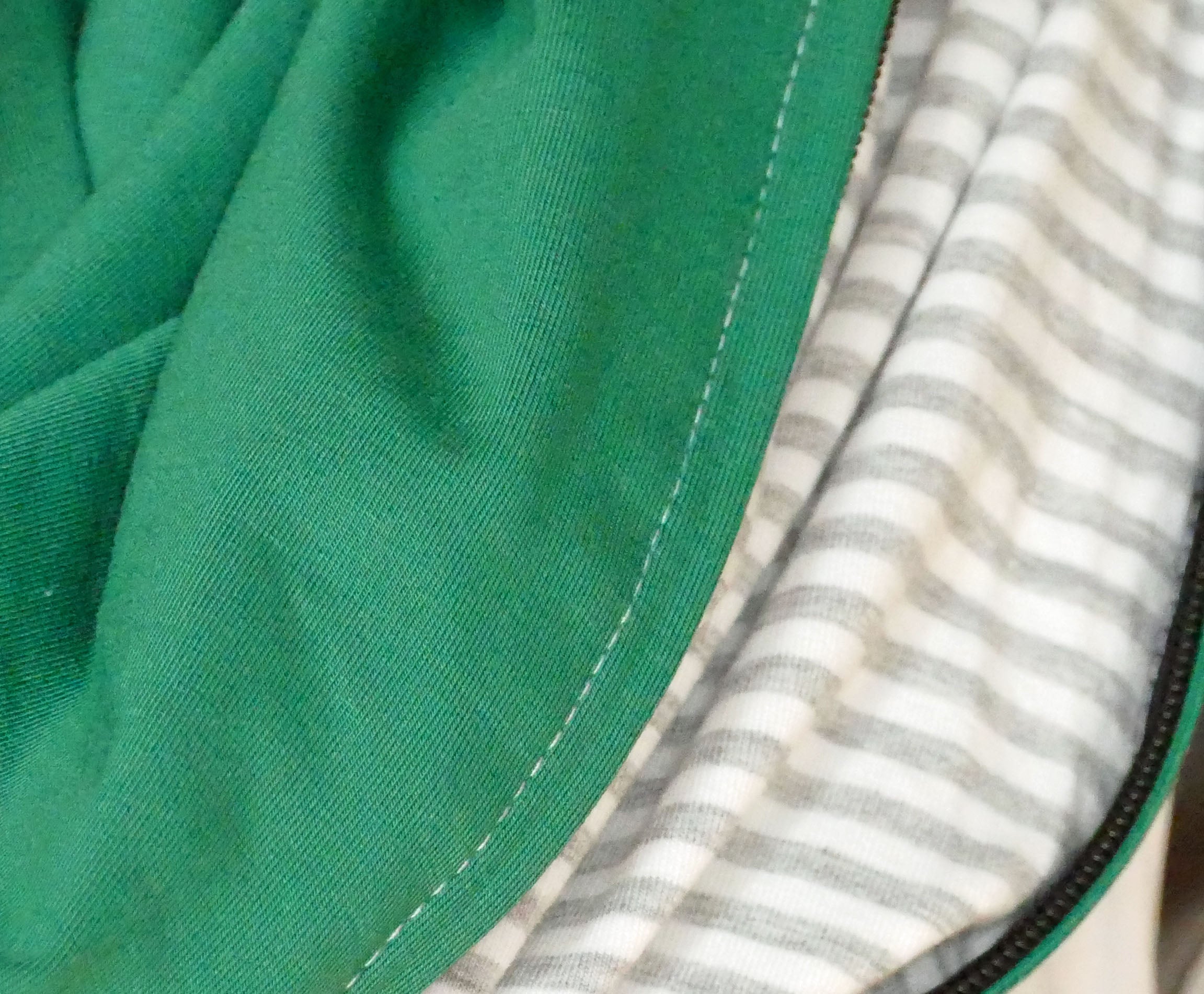 - L'intérieur est rayé blanc et gris.