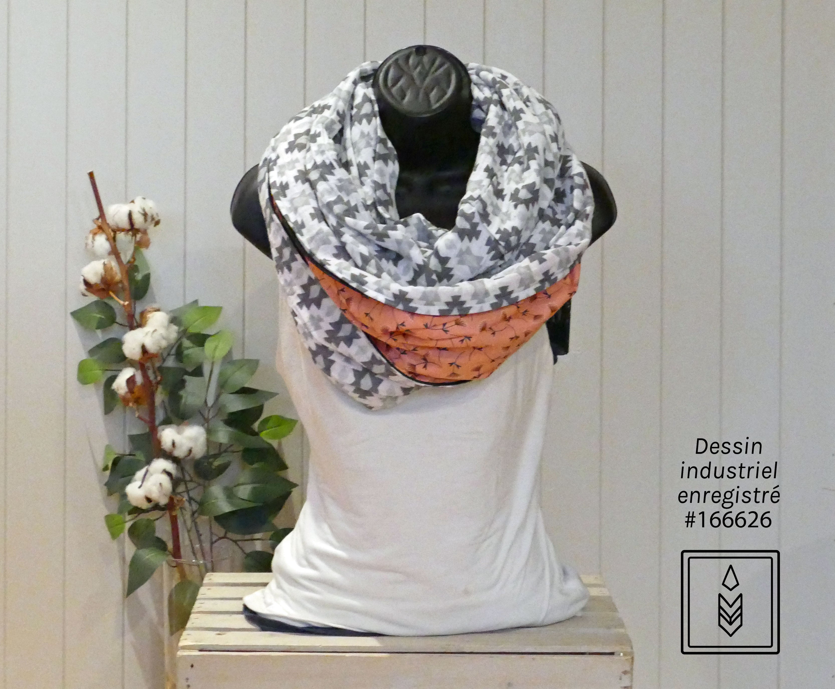 -Foulard : circonférence de 67 pouces (170.2 cm) x largeur de 14 pouces (35.6 cm)