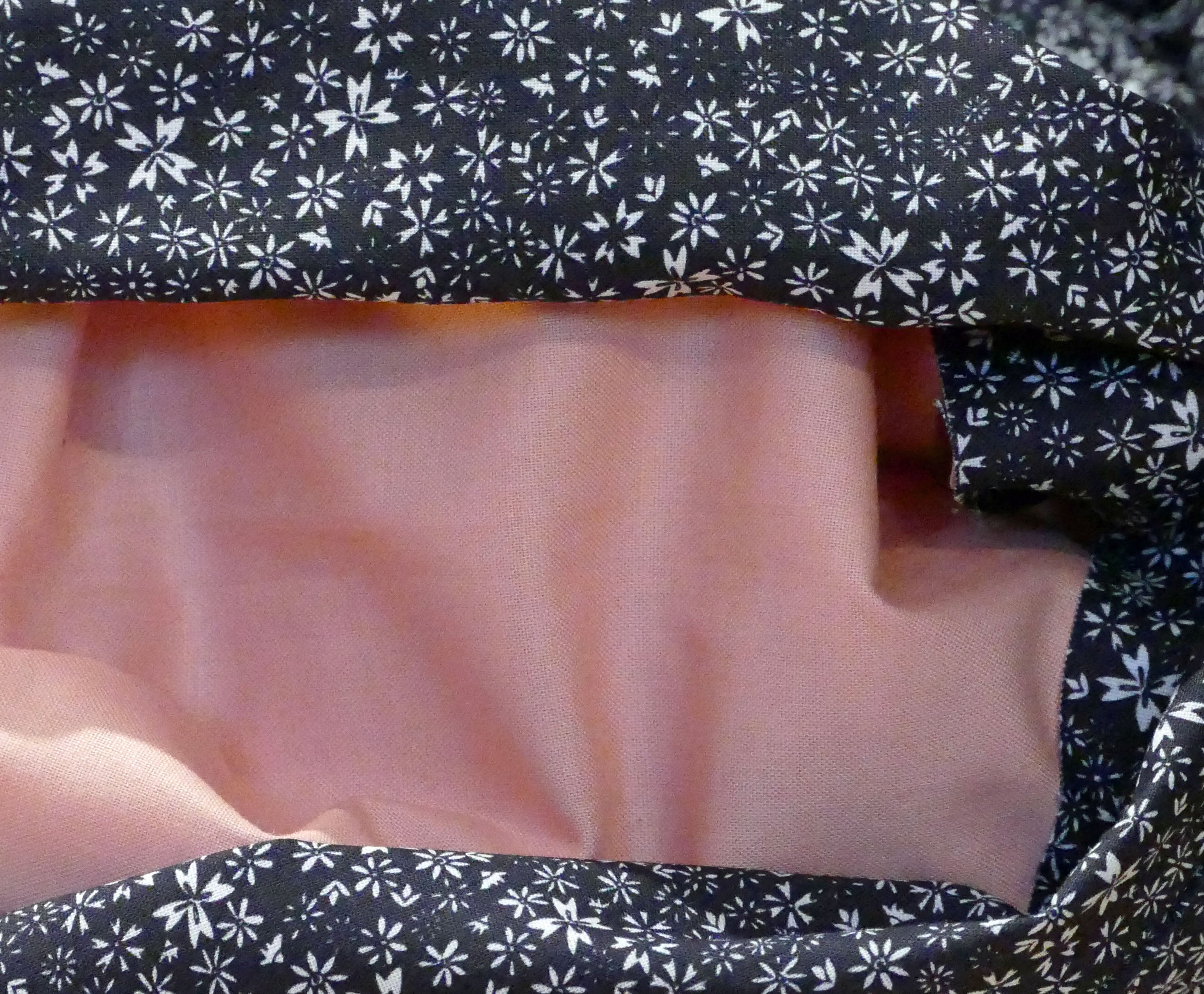 - 7 choix pour la poche : rose / gris effet jeans / chevron rose / saumon pois / jaune / losange gris / gouttes colorés / .