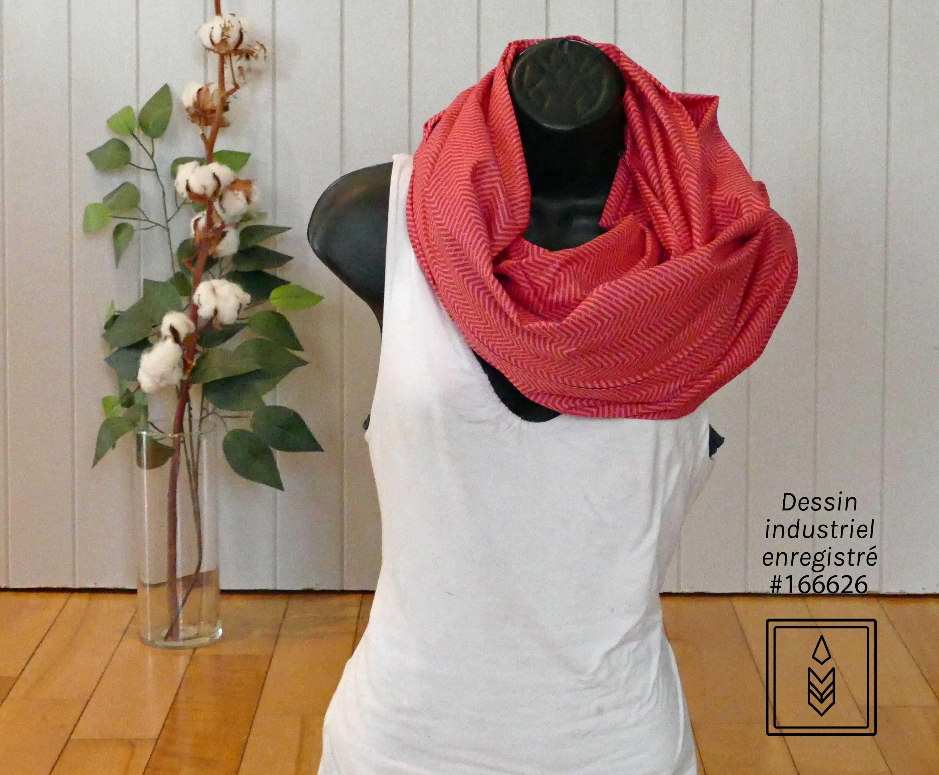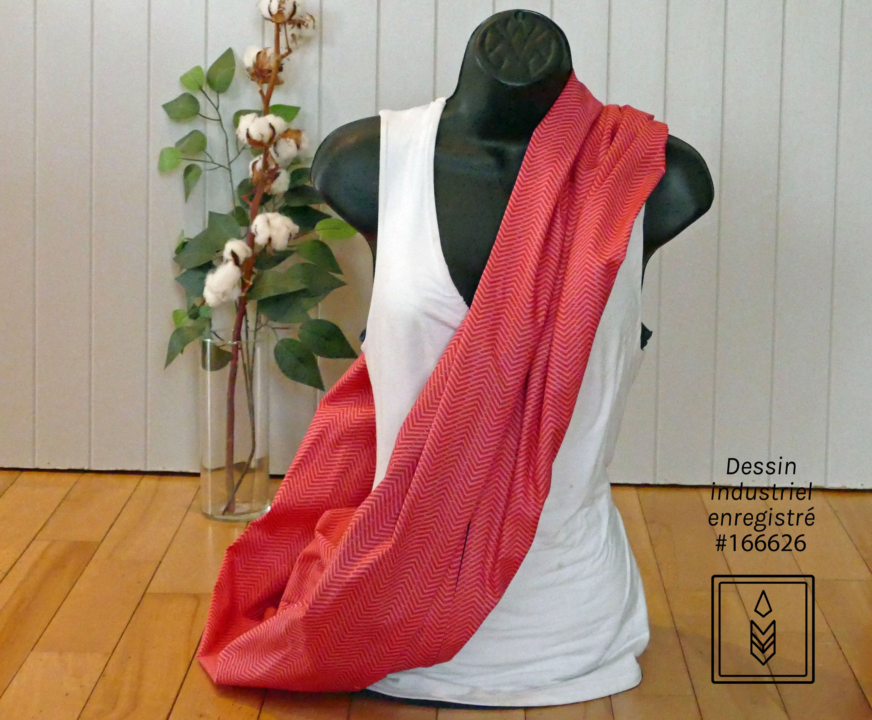 -Foulard : circonférence de 67 pouces (170.2 cm) x largeur de 14 pouces (35.6 cm)