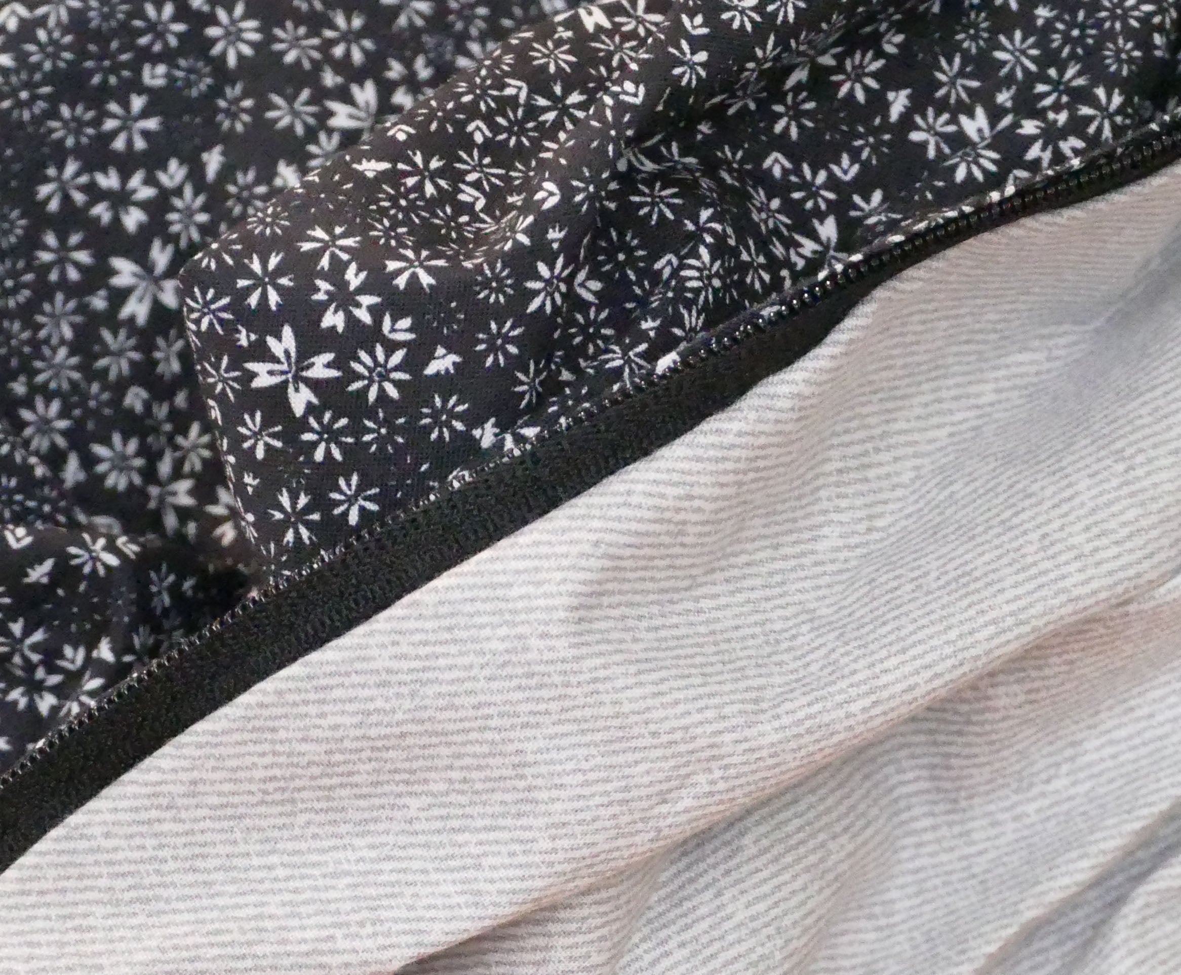 - 7 choix pour la poche : rose / gris effet jeans / chevron rose / saumon pois / jaune / losange gris / gouttes colorés / .
