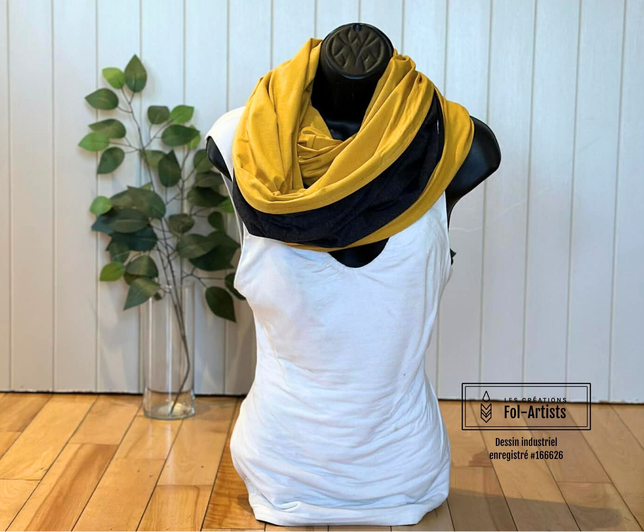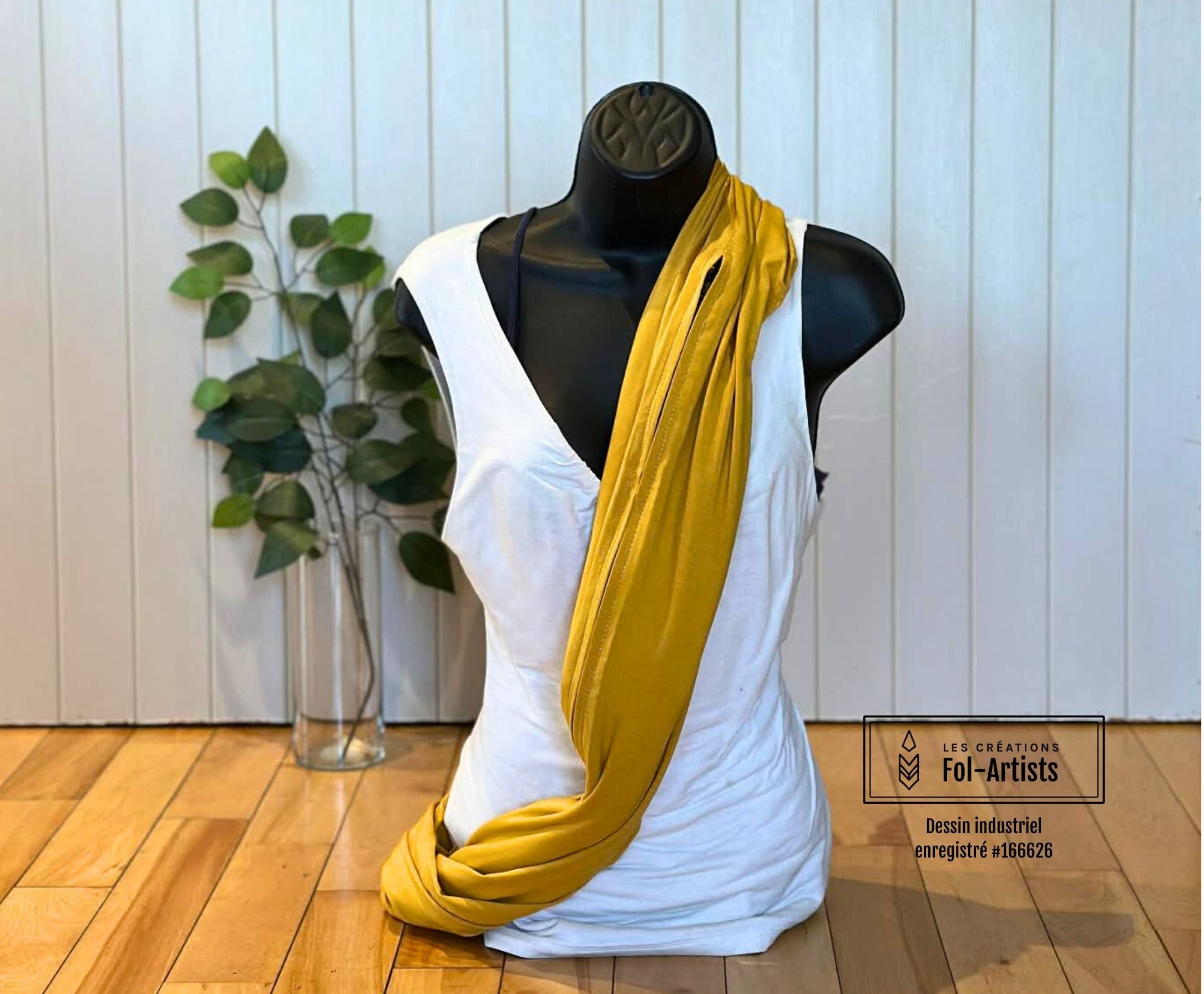 -Foulard : circonférence de 65 pouces (170.2 cm) x largeur de 14 pouces (35.6 cm)